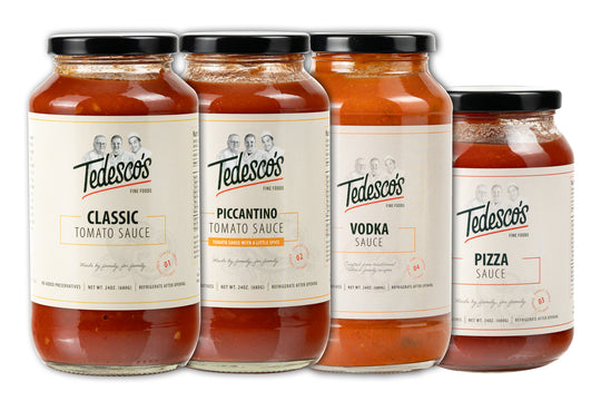 Tedesco's is a Father/Son owned business taking family traditions and history to new levels. We manufacture our family's Tomato Sauces using 110+ year old family recipes utilizing the same ingredients and methods as generations before us. We also import high quality Italian goods such as Extra Virgin Olive Oils from Calabria, Balsamic Vinegars From Modena, and Artisan Pastas.